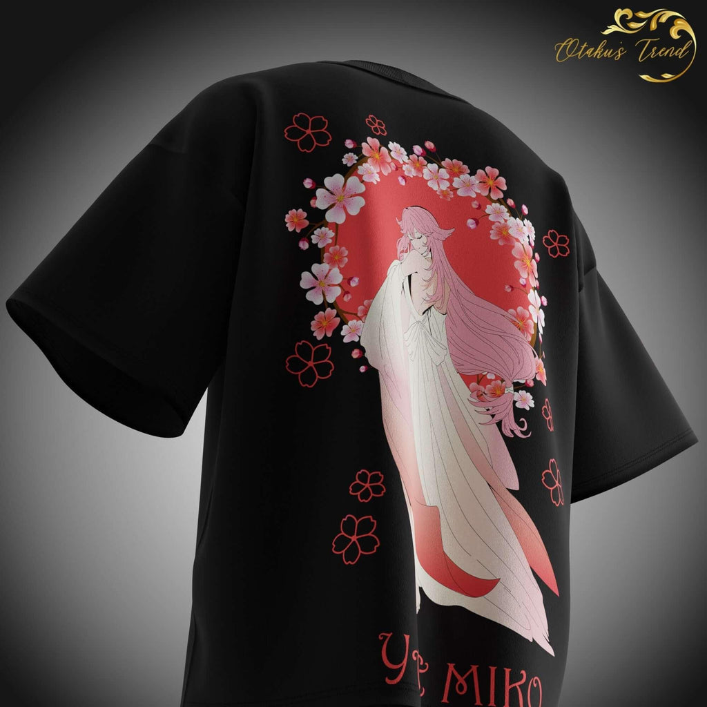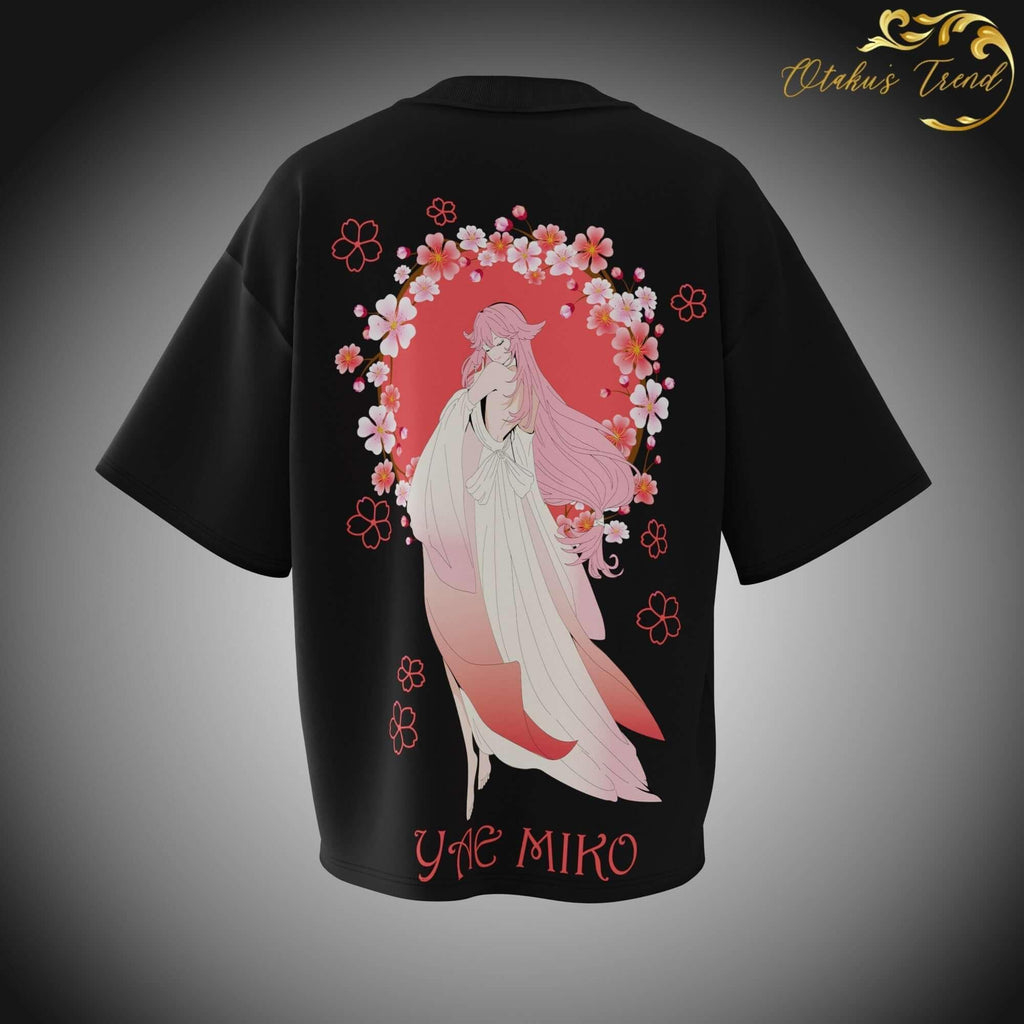 🌸 Yae Miko Oversized Tee – “Grace in Bloom”