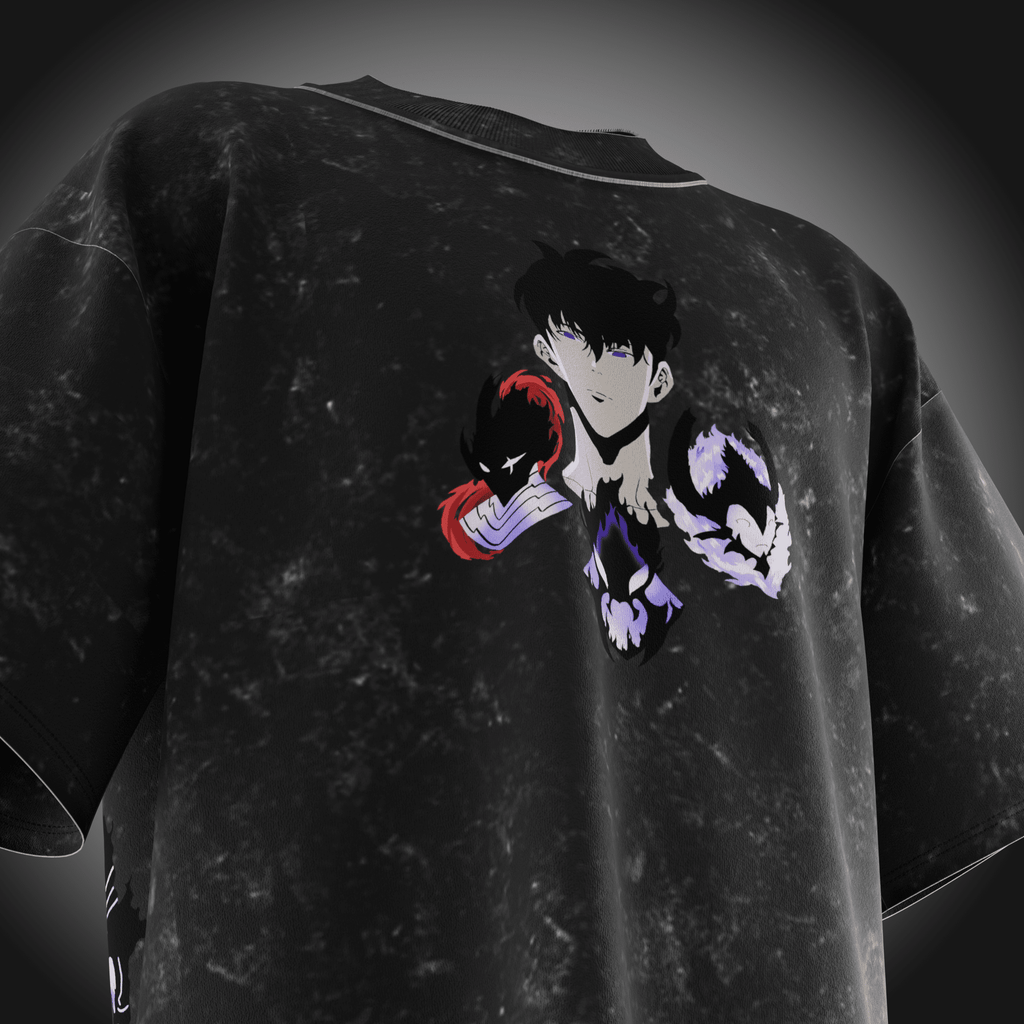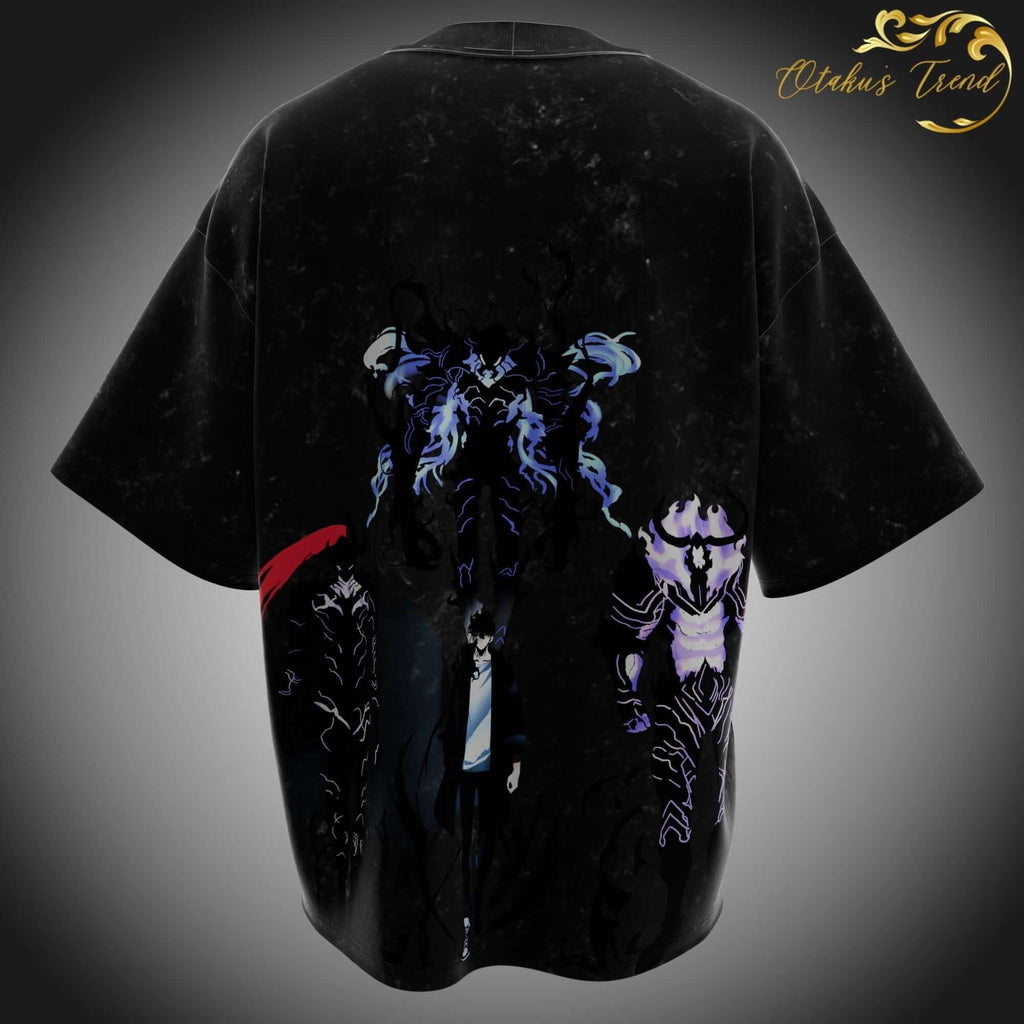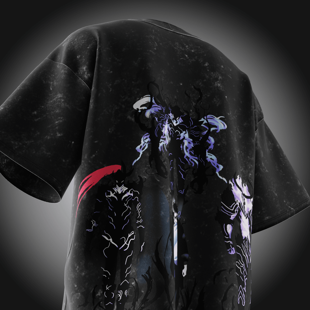Unleash your inner Monarch with this premium oversized tee inspired by Solo Leveling. Featuring an acid-washed black finish and luxury-grade fabric, this piece delivers the perfect mix of dark aesthetics and streetwear dominance.