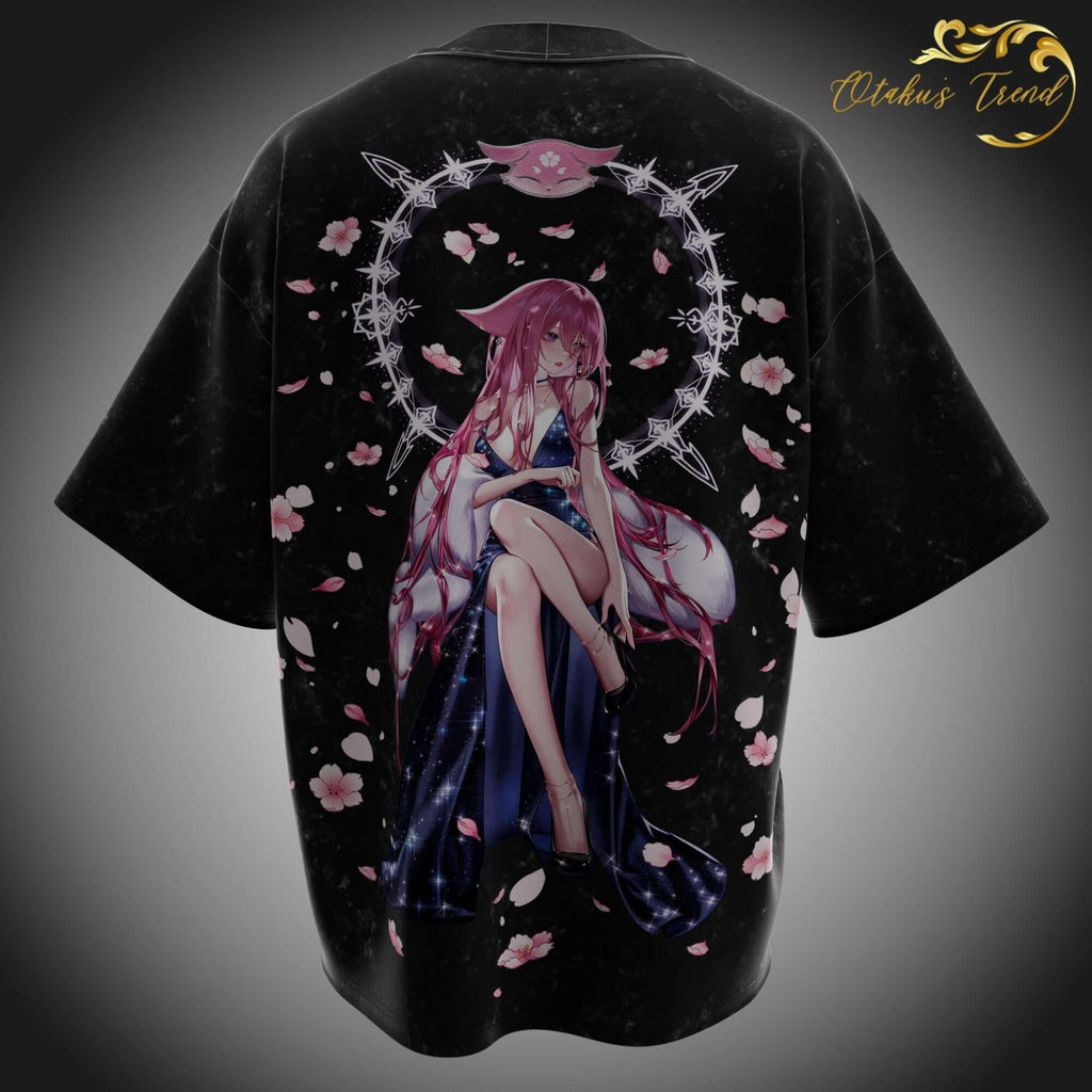 Unleash the elegance and mystique of Yae Miko with this Acid Washed Oversized T-Shirt by AnimeOryx. Designed for true Genshin Impact fans, this premium tee blends anime aesthetics with streetwear fashion, making it a must-have in your collection.
